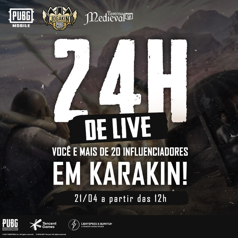 Comemorando o lançamento do mapa Karakin, o PUBG MOBILE apresenta o Jogakin, uma live de 24 horas com influenciadores e parceiros do jogo nesta quarta (21).