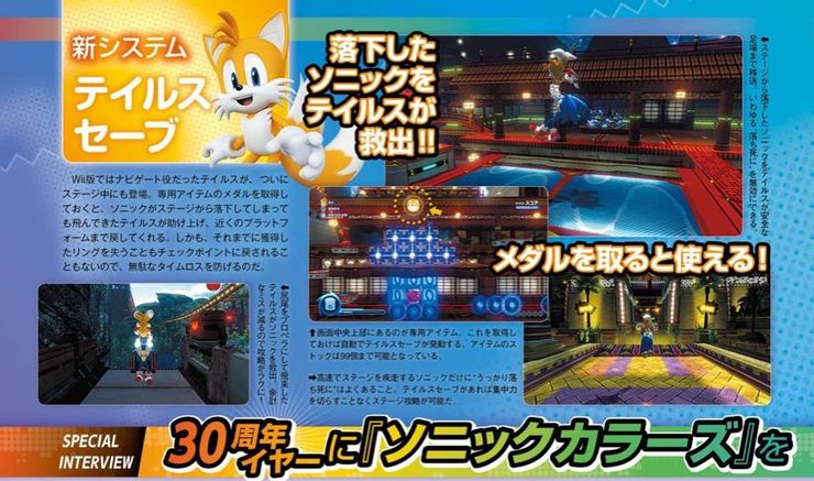 Esta informação veio na revista de games Famitsu que detalhou todos os novos recursos de Sonic Colors: Ultimate. Infelizmente isto não significa que Tails será jogável nesta remasterização, mas sim que este recurso permite aos jogadores coletar medalhões especiais que foram colocados ao redor das fases para serem salvos por Tails, sem perder nenhum anel ou vida.