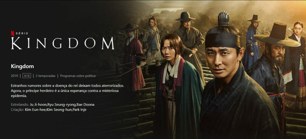Kingdom da Netflix é um drama de terror do período coreano ambientado no século XVI. O enredo da série gira em torno de Lee Chang, o príncipe herdeiro da dinastia Joseon, que se depara com uma praga não natural que ressuscita os mortos, não muito diferente de muitos outros filmes de zumbis por aí. Sendo o primeiro programa coreano original da Netflix, Kingdom teve bastante sucesso, produzindo duas temporadas e um spin-off de longa-metragem com foco em um dos personagens coadjuvantes.