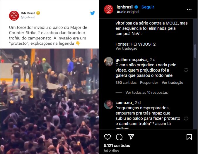 Campeonato de Counter Strike 2 é invadido e tem troféu quebrado