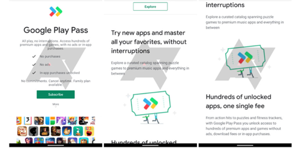 Desde os hits de ação até os quebra-cabeças e rastreadores de atividades físicas, com o Google Play Pass, você desbloqueia o acesso a centenas de aplicativos e jogos premium sem anúncios, taxas de download ou compras no aplicativo”, anuncia a página do serviço.
