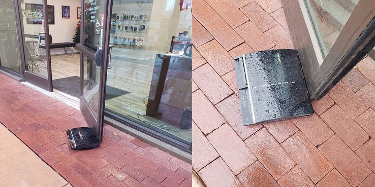 Em imagem que está circulando na internet um PlayStation 3 está sendo usado como peso de porta na chuva, em uma loja de eletrônicos. É um destino um tanto quanto triste, já que até mesmo o questionado Kinect, acessório do Xbox 360, está sendo usado como câmera de segurança em alguns aeroportos, segundo o portal GameRant.