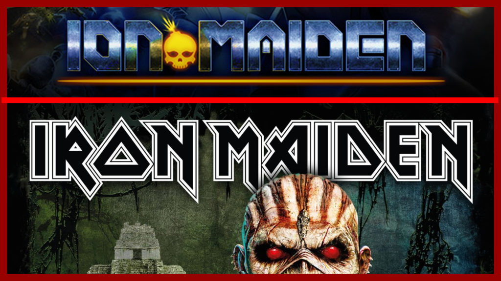 Logotipo do jogo (acima) e logotipo do Iron Maiden com seu mascote Eddie (abaixo). Imagens: Divulgação.