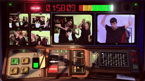 Diante de um gigantesco console de telas, botões e sintonizadores, você precisará escolher os ângulos da câmera das entrevistas, censurar qualquer jurado, exibir os anúncios certos e manter a audiência alta. A transmissão é ao vivo e isso significa que você precisará tomar decisões rápidas e manter a calma.