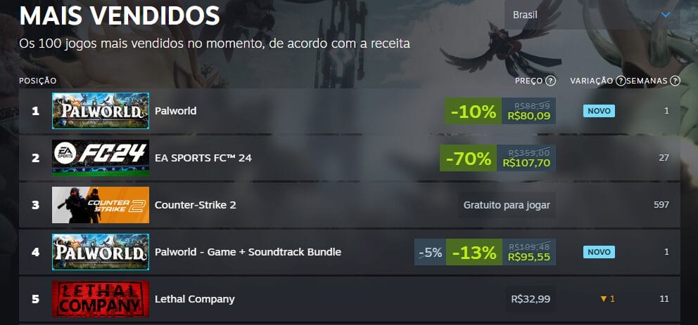 Sendo lançado no dia 19/01, já conta com mais de 30 mil análises, junto com TOP 1 em vendas e em jogadores simultâneos com seus mais de 770 mil pessoas jogando no momento da publicação dessa postagem.