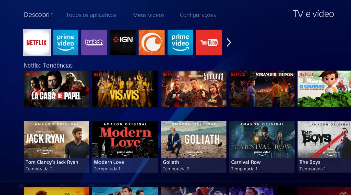 Desde ontem (12), a experiência de TV e vídeo no PlayStation 4 está recebendo uma atualização completa no Brasil. O novo design coloca o conteúdo em primeiro plano, facilitando a descoberta e a exibição dos melhores filmes e programas de TV disponíveis nos seus serviços de streaming favoritos, como Netflix, Amazon Prime Video e YouTube, além do PlayStation Video. Veja abaixo as novidades: