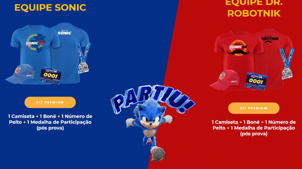 Você pode escolher entre o time Sonic e Dr. Robotinik. Imagem: https://sonic5k.com.br/#kits