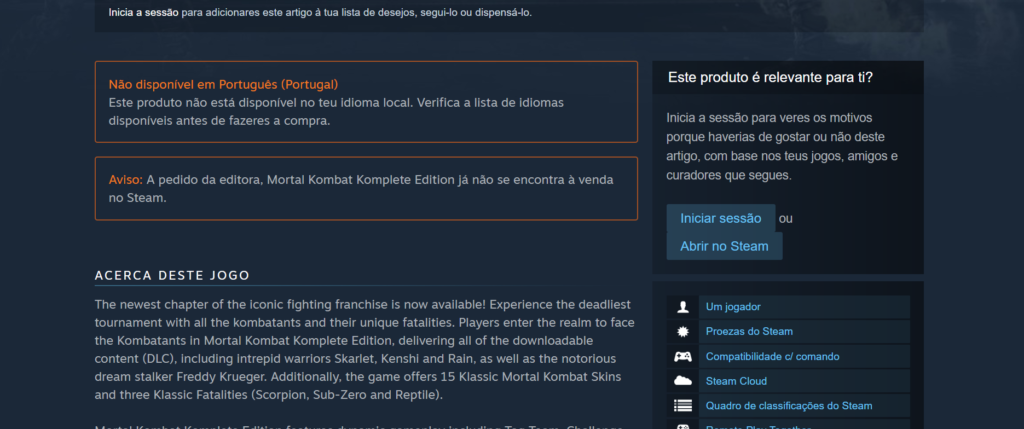 Contudo, vale lembrar que não é a primeira vez que um jogo de Mortal Kombat é removido abruptamente do Steam. Mortal Kombat Arcade Kollection sofreu o mesmo fatality em 2017.