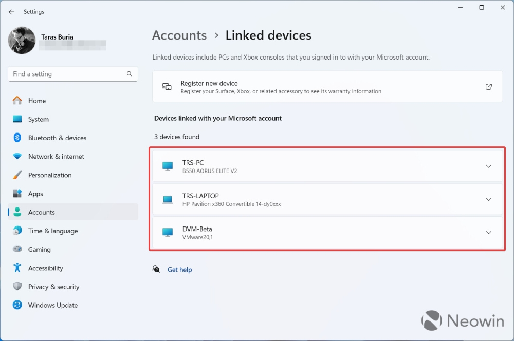 Para saber quais estão conectados junto de seu Win 11 siga os seguintes passos: Vá para a seção “Dispositivos vinculados”, localizada em Configurações > Contas > Dispositivos vinculados. Aqui será exibido todos os dispositivos registrados na conta Microsoft do usuário junto com todos os detalhes que você estiver procurando.
