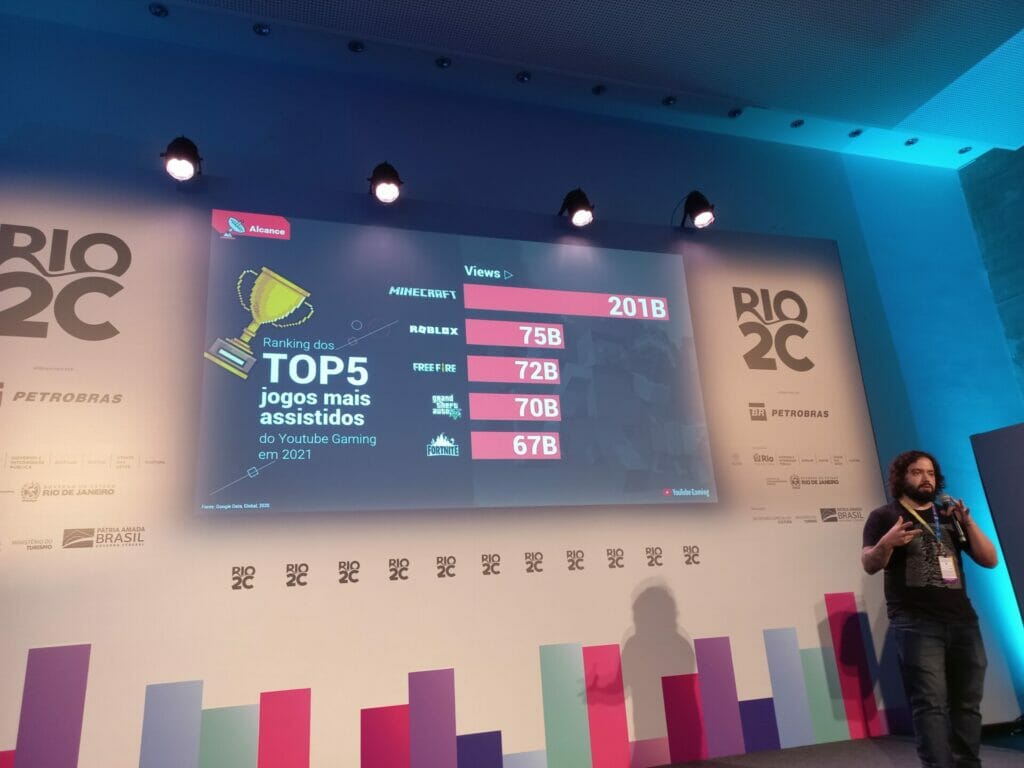Durante a edição 2022 da Rio 2C, evento considerado o maior encontro de criativos da América Latina, o Youtube marcou presença em um dos espaços reservados para palestras com o tema “YOUTUBE GAMING: UM PANORAMA DO MERCADO BRASILEIRO”.