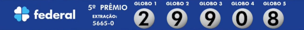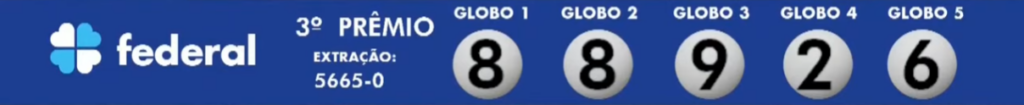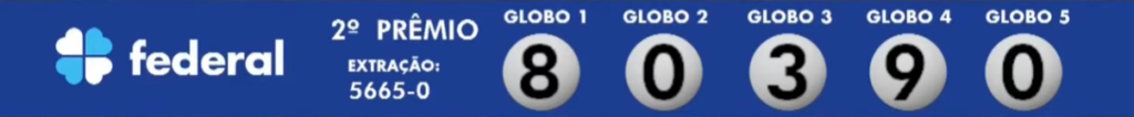 Nestea Sábado (21), a Caixa sorteou o concurso de número 5665-0 da Loteria Federal. A transmissão do sorteio aconteceu ao vivo à partir das 19h direto do Espaço da Sorte, em São Paulo. Confira abaixo: