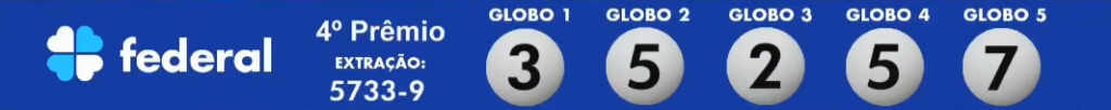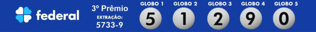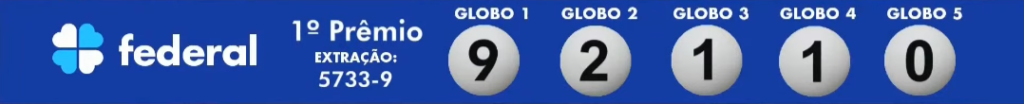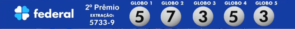 Neste sábado (21), a Caixa sorteou o concurso de número 05733-9 da Loteria Federal. E mais uma vez, o sorteio aconteceu com transmissão ao vivo direto do Espaço da Sorte, em São Paulo. Confira abaixo os números sorteados, a premiação, o vídeo do sorteio e os sorteios anteriores:
