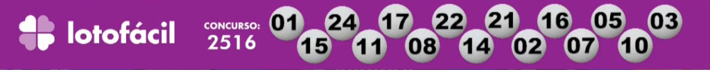 Nesta segunda-feira (9), a Caixa sorteou o concurso 2516 pela loteria da Lotofácil, que até o momento do sorteio estava avaliada em R$1.500.000. E mais uma vez, este e outros sorteios da noite aconteceram com transmissão ao vivo direto do Espaço da Sorte, em São Paulo. Confira abaixo:
