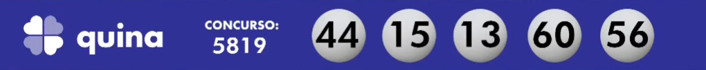 Neste sábado (4), a Caixa sorteou o concurso 5819 pela loteria da QUINA, avaliada até o momento em cerca de R$ 1.400.000,00. A transmissão do sorteio aconteceu ao vivo direto do Espaço da sorte a partir das 20h, e os resultados podem ser conferidos pelo vídeo a seguir e mais abaixo