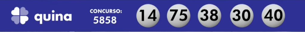 Nesta sexta (20), a Caixa sorteou o concurso 5858 pela loteria da Quina. E mais uma vez, o sorteio aconteceu com transmissão ao vivo direto do Espaço da Sorte, em São Paulo. Confira abaixo os números sorteados e o vídeo do sorteio: