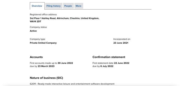A publicação revela que a empresa foi incorporada no dia 23 de junho, oficialmente. Na mesma publicação, está expressa ainda a atividade exercida pelo estúdio: “desenvolvimento de software de entretenimento e lazer interativo pronto para uso”. Em outras palavras, videogames.