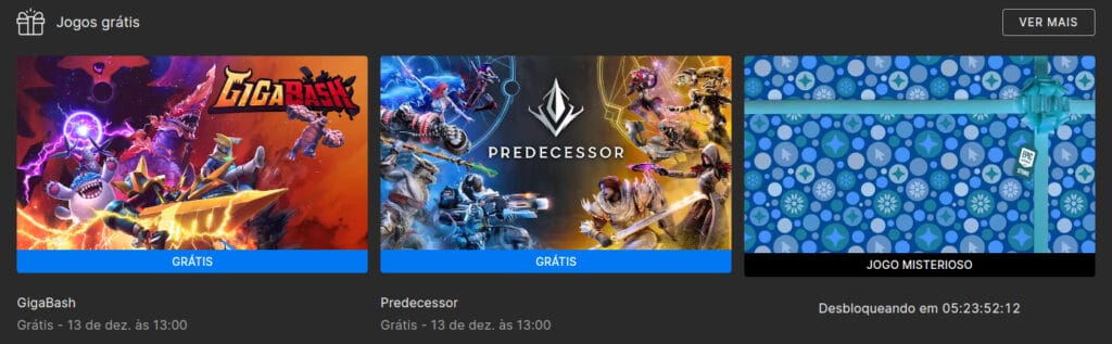 Agora a Epic Games liberou os dois mais novos jogos gratuitos para os donos de PC, que são GigaBash e Predecessor, que estarão disponíveis até o dia 13 de dezembro, às 13 horas, quando serão substituídos por… chegamos ao mês dos Jogos Misteriosos! O próximo título ainda não foi revelado, e os donos de PC terão que aguardar por ele