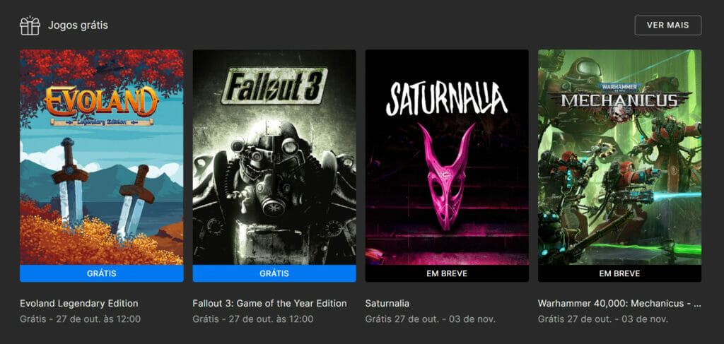 Leva os fãs de gráficos monocromáticos a 3D, de batalhas em tempo ativo a lutas contra chefes em tempo real e muito mais. Os usuários da Epic Games Store poderão reivindicá-los até 27 de outubro, quando os títulos recém-anunciados os substituirão. Já os próximos jogos que chegam na próxima semana são: Saturnalia e Warhammer.