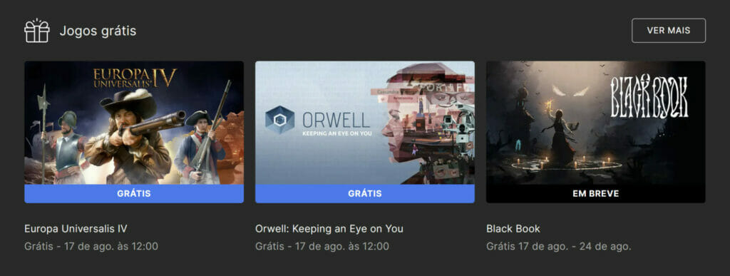 Caso tenha olhado no site em inglês, terá os dois jogos, mas ao entrar no brasileiro, verá apenas Black Book. E por qual motivo ele não aparece para os brasileiros? Simples: ele não está disponível para a nossa região. Isso já aconteceu anteriormente quando ficamos sem um jogo, só que a Epic Games corrigiu rapidamente.