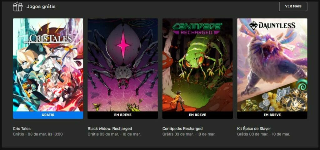De 3 a 10 de março, os usuários da Epic Games Store poderão reivindicar Black Widow: Recharged, Centipede: Recharged e o Kit Épico de Slayer. Estas são novas versões de jogos de arcade clássicos que receberam atualizações gráficas e outros recursos modernos. O que exatamente o Kit Épico não está claro até o momento, pois a descrição na Epic Games Store não fornece muitos detalhes e o produto não será lançado até 3 de março.