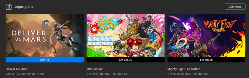 Além de Deliver Us Mars, a Epic Games também revelou os dois novos jogos gratuitos que estarão disponíveis a partir do dia 30 de novembro, que são: Jitsu Squad e Mighty Fight Federation. Para reivindicar o jogo de hoje, basta ter uma conta na Epic Games, que é gratuita, clicar no jogo, depois que abrir a nova página, Obter e pronto, você receberá um recibo que ele já é totalmente seu!