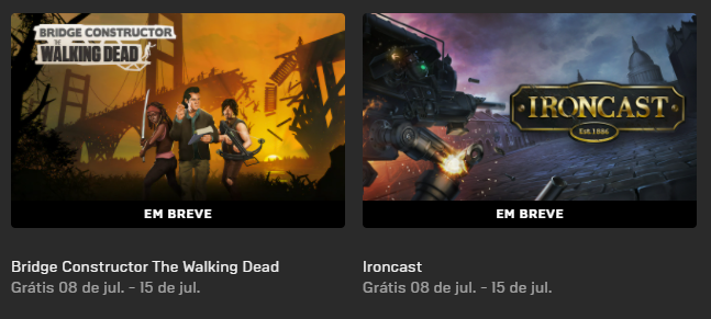 Já Ironcast, é um jogo de estratégia baseado em turnos ambientado em uma história alternativa, a versão steampunk dos anos 1880. É um jogo roguelite com os mechs titulares “Ironcast”, e recebeu críticas positivas na época de seu lançamento original. Ambos os jogos serão gratuitos para usuários da Epic Games Store sem qualquer compromisso até 15 de julho quando serão substituídos por novas ofertas.