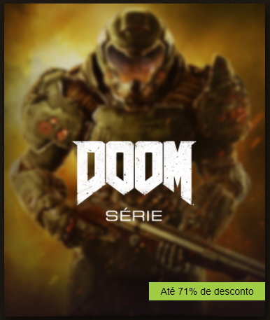 O DOOM Franchise Bundle está com um excelente desconto para os fãs da franquia, saindo de R$ 434,43 por R$125,32! Além dele, os outros jogos da saga DOOM estão com um desconto de 70%. Realmente está valendo a pena completar ou iniciar a sua coleção já que por exemplo o Doom Classic Complete que vem com Doom II, Final Doom, Masters for Level Doom e Ultimate Doom custa R$ 7,49 Não tem como deixar passar!