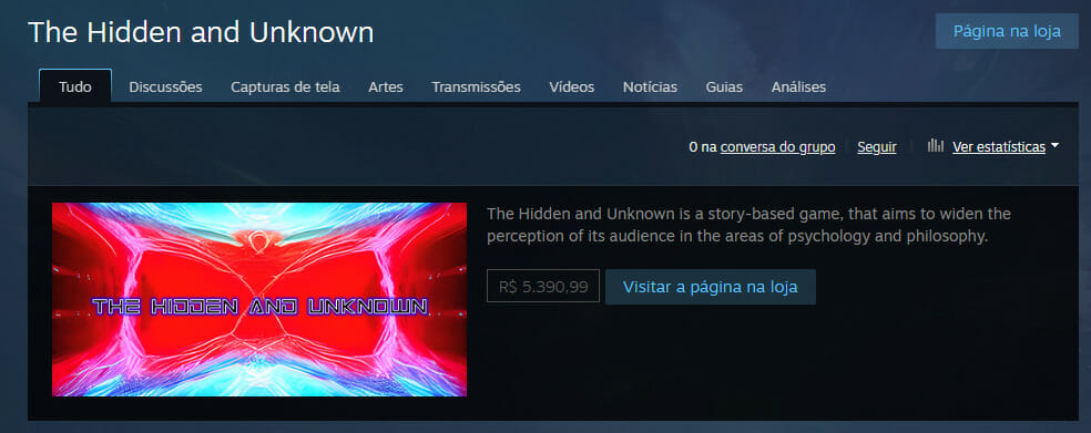 Um jogo de preço exorbitante começa com um estranho rastreamento de texto impossível de pular de 8 minutos que alude fortemente ao ativismo pelos direitos dos homens. The Hidden and Uknown é um romance visual não interativo no Steam que custa mais de cinco mil reais e tem menos de 2 horas com a justificativa do desenvolvedor de que era seu direito fazê-lo.