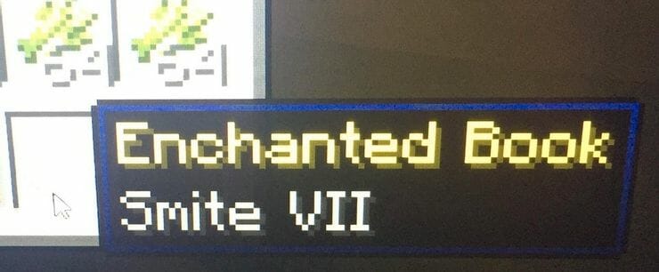 No entanto, ao adicionar o livro a uma bigorna e aplicar o encantamento a uma espada, ele reverteu para o que os desenvolvedores codificaram como o maior encantamento possível. Enquanto Smite VII seria extremamente valioso contra um exército de zumbis, Smite V em uma espada Netherite pode efetivamente matar a maioria dos mobs mortos-vivos em um ou dois ataques, dependendo da armadura equipada. Portanto, Smite VII é provavelmente desnecessário.