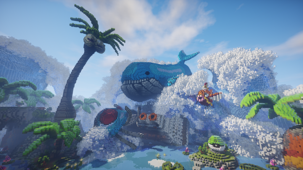 Agora, um usuário do Reddit e talentoso construtor de Minecraft, SirArzey, decidiu dar as boas-vindas à chegada iminente do verão criando uma cena de Pokémon incrivelmente detalhada com Wailord. A imagem dinâmica mostra um Wailord surfando feliz em uma onda do tamanho de um tsunami, acompanhado por um Magikarp. A chegada de Wailord parece ter derrubado o cruzeiro de luxo S.S. Anne, embora seja incerto se o enorme Tentacruel ao lado dele está ajudando a estabilizar o navio, ou no meio de um ataque. Mantendo o tema do verão, a construção é cercada por uma série de palmeiras, com um Alolan Exeggutor habilmente disfarçado estendendo-se acima de Wailord.