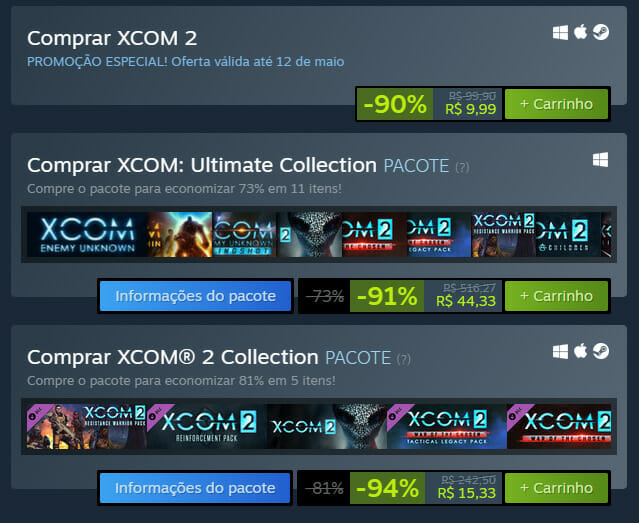 Este seria, sem dúvida, um ótimo negócio para iniciantes que ainda não mergulharam no XCOM. E, finalmente, há o XCOM 2 Collection, que inclui apenas o XCOM 2 e vários de seus próprios DLCs. Nenhuma das coleções inclui todos os pacotes de DLC, infelizmente, mas eles também tiveram uma queda de preço substancial. Independentemente disso, este acordo está em vigor até 12 de maio.