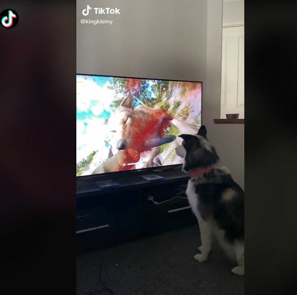 Postado no TikTok pelo usuário @KingKleiny, o vídeo lentamente se aproxima de um cachorro enquanto observa alguém jogando Far Cry 6. Infelizmente, o jogador foi atacado por um cachorro dentro do jogo e foi forçado a lutar contra ele e, eventualmente, matá-lo, enquanto seu cachorro de verdade simplesmente encara a TV em uma triste confusão. Assim que a ação foi cumprida, o cachorro de @Kleiny se vira para olhar para a câmera como se dissesse: “como você pôde fazer uma coisa dessas?”. Clique aqui para assistir.