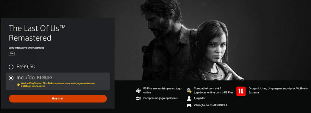 The Last Of Us: A versão remasterizada inclui pacotes com mapas de territórios abandonados, territórios recuperados e a campanha para um jogador The Last of Us: Left Behind, que foi aclamada pela crítica e combina temas se sobrevivência, lealdade e amor com um jogo intenso com sobreviventes em ação.