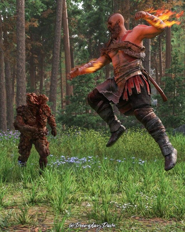 DoomsdayDaveVP compartilhou uma série de renderizações maravilhosas que descrevem os eventos que poderiam ter ocorrido se Ellie de The Last of Us tivesse sido criada por Kratos de God of War. No melhor estilo da animação do Disney+, Marvel’s What If… ? DoomsdayDave apresenta um universo alternativo onde Ellie substitui Atreus enquanto eles caçam juntos. Assim como a introdução do último God of War, Kratos é visto ativando sua habilidade Spartan Rage, embora desta vez sua fúria seja direcionada a um dos bloaters de The Last of Us, sugerindo que Kratos é retratado no universo de Ellie e não vice-versa.