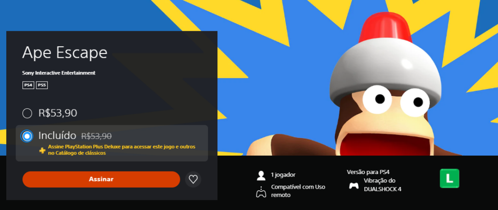 Curta Ape Escape, originalmente lançado no console PlayStation, agora melhorado com nova renderização, opção de retroceder, salvamento rápido e filtros de vídeo personalizados. Uma horda de macacos roubou a máquina do tempo do Professor e viajou pela história para alterar o passado e garantir que os macacos governem o mundo. Cabe a Spike (e à sua coleção de dispositivos incríveis) salvar o dia.