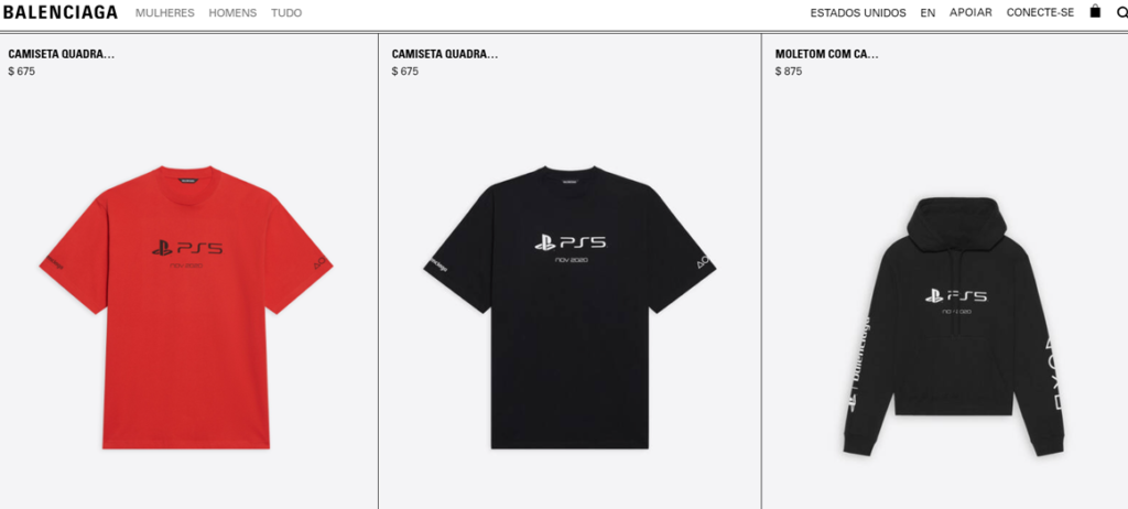 Apesar do preço da camiseta ser realmente maior que o do próprio PS5, há um lugar onde isto não procede, e infelizmente é o Brasil. Por aqui, o produto já está bem mais caro do que esta linha de roupas em muitos lugares, o que tem chocado muitos internautas. Confira aqui como estão esses preços que deixam essa aquisição no modo very hard para muitos bolsos.