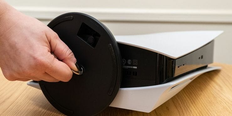 Além disso a base foi ligeiramente redesenhada e mostra uma nova braçadeira que se conecta ao Playstation 5. É uma pequena mudança e sutil, mas irá ajudar a tornar sua configuração inicial um pouco mais direta. E curiosamente, o número de série também mudou de CFI-1000 para CFI-1102A.