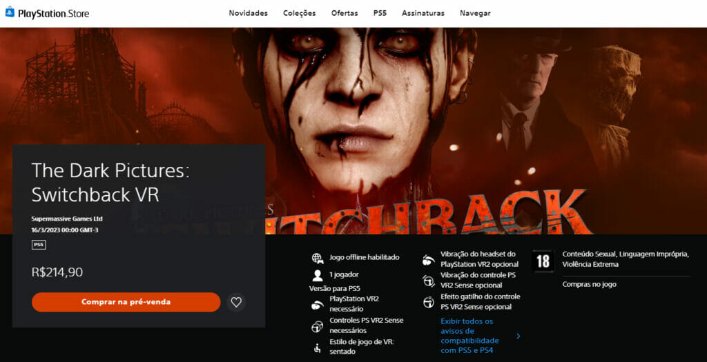 NÃO PISQUE! Mergulhe nesta montanha-russa infernal neste jogo de tiros de ação e terror, onde cada movimento pode ser a diferença entre a vida e a morte! Vivencie a emoção dessa montanha-russa horripilante em VR, aprimorada por recursos inovadores do PlayStation® VR2, ambientada nos mundos sinistros das franquias da The Dark Pictures Anthology.