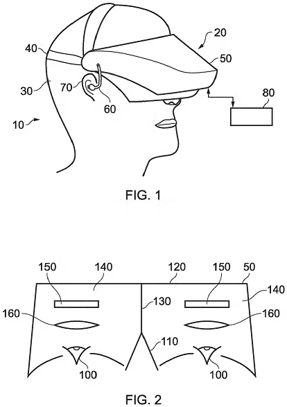 Ao usar um FOV amplo, os espectadores têm uma chance reduzida de enjôo ao assistir a jogabilidade de um fone de ouvido do usuário do PS VR2. A nova patente da Sony ilustra esse método com figuras que aparentemente representam um usuário do PS VR2 e o interior do fone de ouvido.