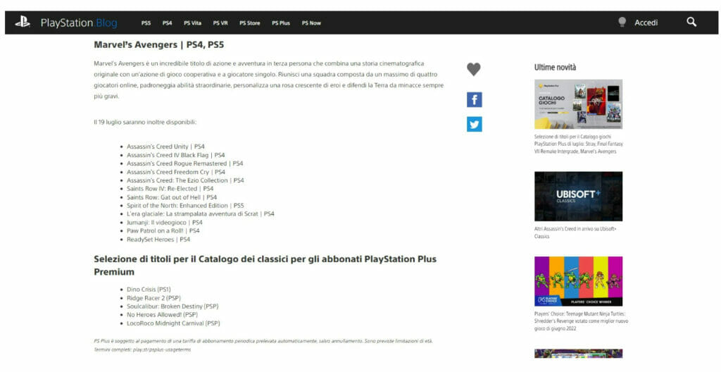 Mais recentemente, outra imagem foi postada no Twitter, mostrando uma captura de tela tirada do PS Plus Premium Itália listando os jogos que serão lançados no serviço. A captura de tela mostrou que Dino Crisis é um dos supostos jogos que chegam ao serviço ao lado de Ridge Racer 2, Soulcalibur: Broken Destiny, No Heroes Allowed! e LocoRoco Midnight Carnival. Infelizmente, a página PS Plus Premium da Itália atualizou sua postagem, removendo Dino Crisis, Ridge Racer 2 e SoulCalibur: Broken Destiny.