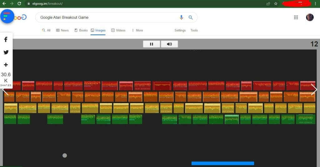 Novamente, se você não usar a opção de Pesquisa Google, o easter egg não será carregado conforme o esperado. O mesmo vale para as imagens de pesquisa do Google. Ele mostrará várias capturas de tela do jogo do Google, mas nenhum jogo real para você jogar. Se você quiser jogar Breakout na Pesquisa do Google, precisará pesquisar com esse botão ESTOU COM SORTE.