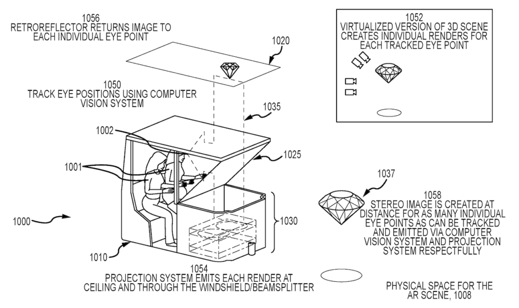 De acordo com o Theme Park Insider, a The Walt Disney Company pode estar procurando novas maneiras de trazer a realidade aumentada para seus parques de diversões. A empresa publicou uma patente em setembro de 2022 para a tecnologia AR que usa visão computacional para rastrear os olhos dos usuários e projetar uma cena virtual que aparece em 3D da perspectiva deles. Essa nova tecnologia pode ser utilizada nos passeios dos parques temáticos da Disney, oferecendo uma experiência virtual imersiva para os visitantes.