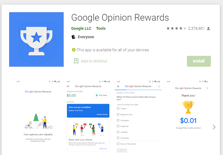 O Google Opinion Rewards é um programa baseado em recompensas que fornece aos jogadores Saldo / Crédito do Google Play para responder a pesquisas breves. Esses créditos podem ser usados para recarregar diamantes no Free Fire. O aplicativo tem mais de 50 milhões de downloads na Google Play Store e é classificado como 4.3 / 5. Os leitores podem clicar aqui para visitar a página do aplicativo na Google Play Store.