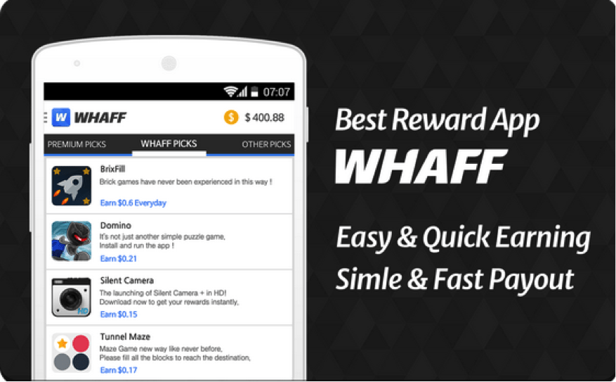 Mesmo método ao do Google Opinion Rewards. O Whaff pede que instale outros jogos e aplicativos como teste e em troca você ganha créditos que são adicionados na sua carteira do Google ou da App Store.