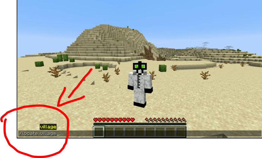 Caso você tenha cheats habilitados, será muito simples encontrar uma das vilas mais próximas. A forma que precisa fazer é apenas abrir o console com a tecla “/” e digitar:
