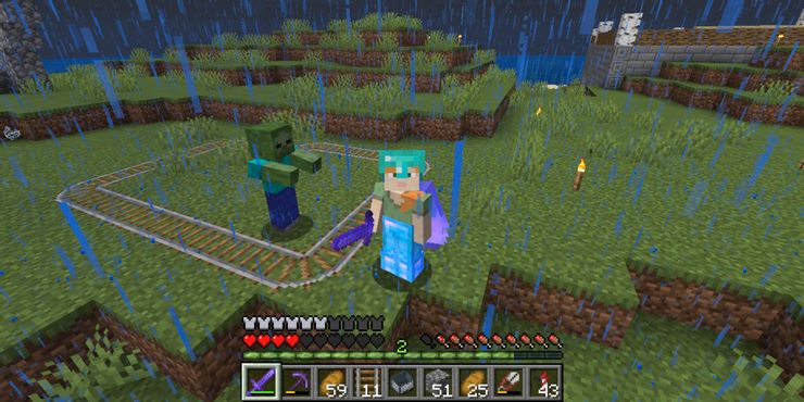 Capturar mobs é uma luta clássica com a qual todo jogador de Minecraft precisa lidar em algum momento. Com mobs passivos, a tarefa tende a ser um pouco mais fácil, mas quem pode dizer que os jogadores também não podem prender mobs hostis e colocar um crachá neles para ter um amigo maligno permanente como seu prisioneiro? Embora a maneira clássica seja usar barcos, os mobs também podem ficar presos em locais usando trilhos.